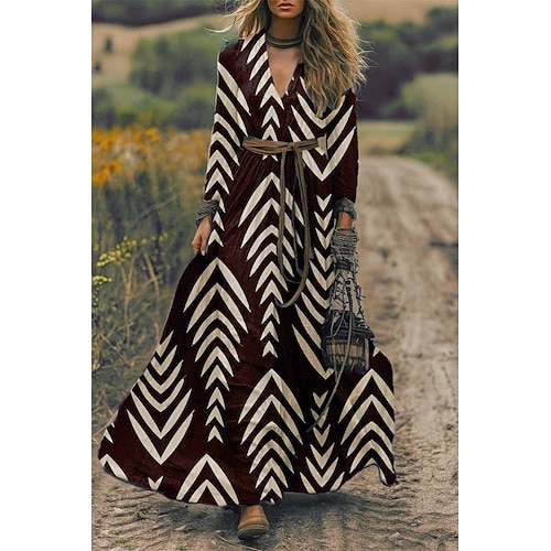 Per donna Abito Midi Vestito Estivo Abito a trapezio Vacanza Casual Boho Uscire Spiaggia Vestibilità comoda Grafico Geometrico Manica Lunga Scollo a V Rosa Blu Viola Verde Primavera Autunno Inverno