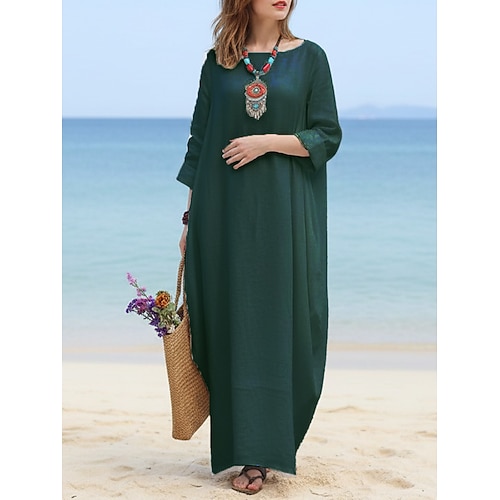 Per donna Abito maxi Finto cotone e lino Abito a Tubino Vestito a caftano Abito Bianco Elegante Moda Moderno All'aperto Spiaggia Vacanza Vestibilità comoda Semplice Manica Lunga Girocollo Blu Nero