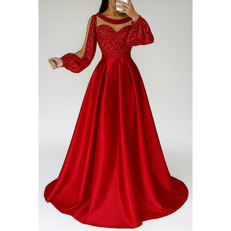 A-Line Floor Length Prom Dresses Evening Gown Ball Gown Formal Dress Elegant Silky Long Sleeve Illusion Neck Wedding Formal Champagne Mother Of the Bride Dress Satin with Glitter Pleats