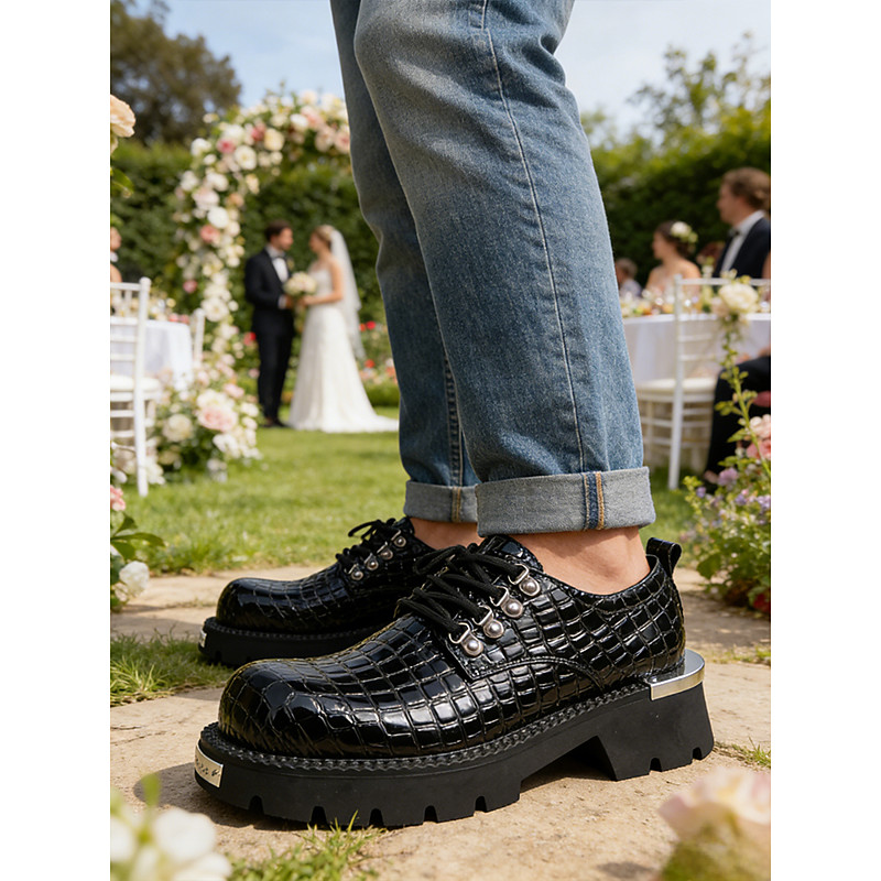 Men's Patent Faux Leather Chelsea Boots – Classic Wingtip Brogue Design for Formal and Casual Occasions