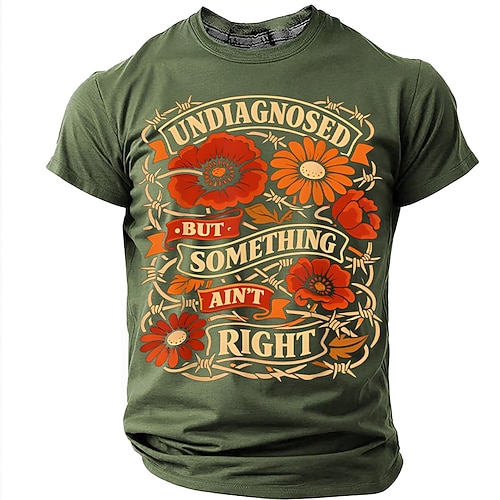Maglietta da uomo con grafica divertente e sarcastica, stampa vintage floreale con filo spinato, umorismo autoironico, battuta sulla salute mentale, citazione, casual, maniche corte, taglie S, M, L,