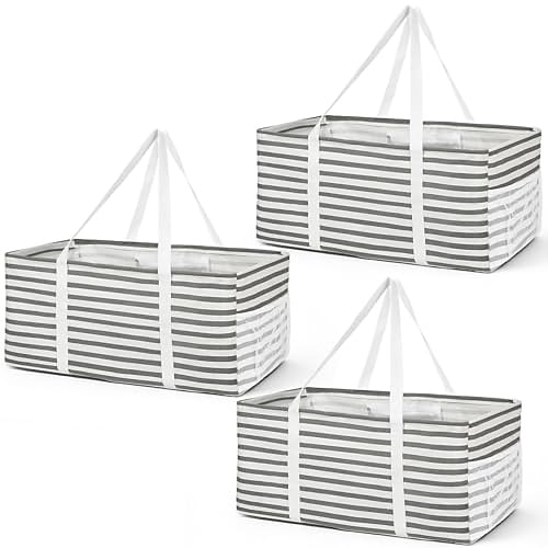 Borsa della spesa riutilizzabile grande da 38 litri con struttura in filo metallico manici, borsa della spesa pieghevole verticale per riporre oggetti, picnic, spiaggia, lavanderia organizzatore per