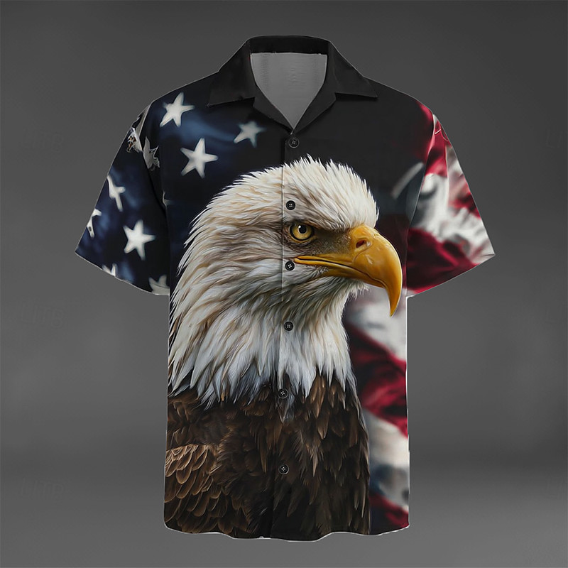 American Independence Day Men's Eagle American Flag Shirt Button Up Shirt Short Sleeve Fashion Streetwear Designer Daily Going out Independence Day Summer Spring Turndown Print Button-Down Royal Blue