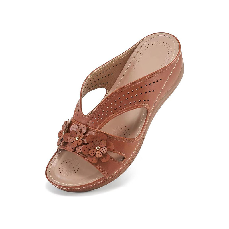 Elegant Floral Cutout Wedge Sandals for Women - Comfy Summer Shoes with Decorative Flowers, Great for Daily Wear or Garden Parties