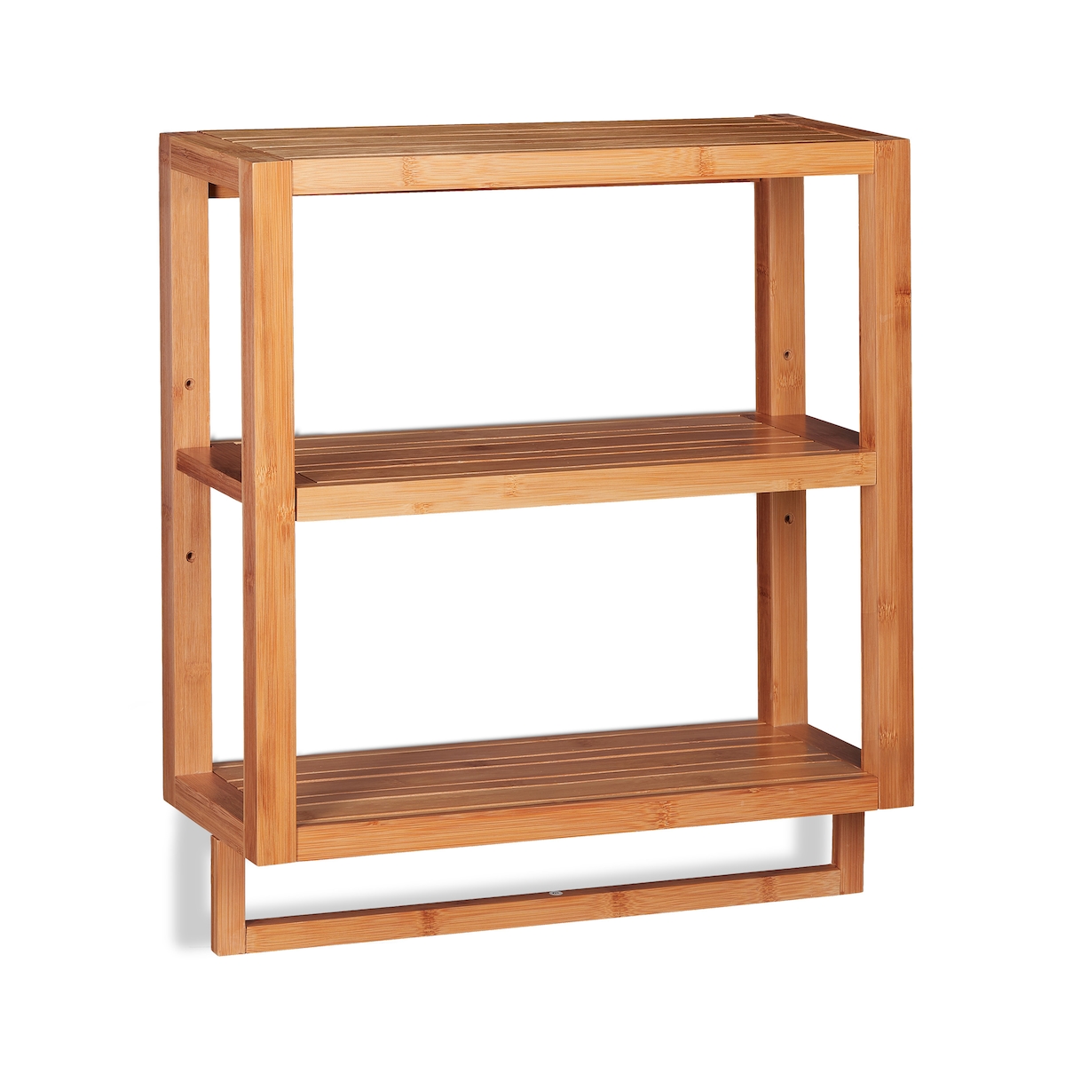 Relaxdays Wandregal Bambus, 3 Ablagen, Handtuchstange, Einlegeboden, Hängeregal für Küche & Bad, HBT 58,5x52x21cm, natur