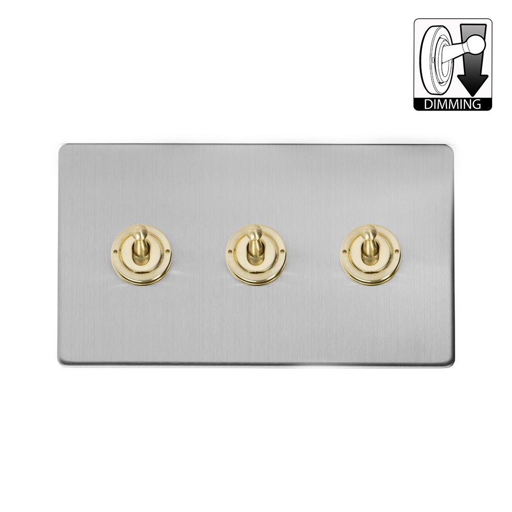 Soho Lighting Lighting Brushed Chrome & Brushed Brass 3 Gang Dimming Toggle Switch