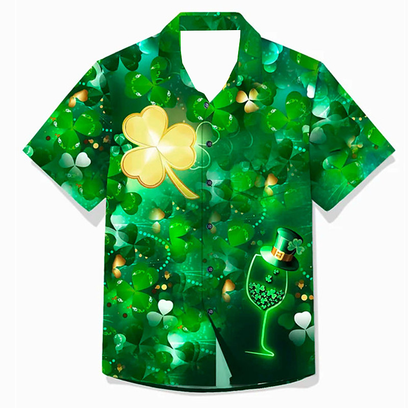 St.Patrick's Day Four Leaf Clover Casual Men's Shirt Daily Wear Going out Weekend Summer Turndown Short Sleeves Dark Green, Green S, M, L 4-Way Stretch Fabric Shirt St.