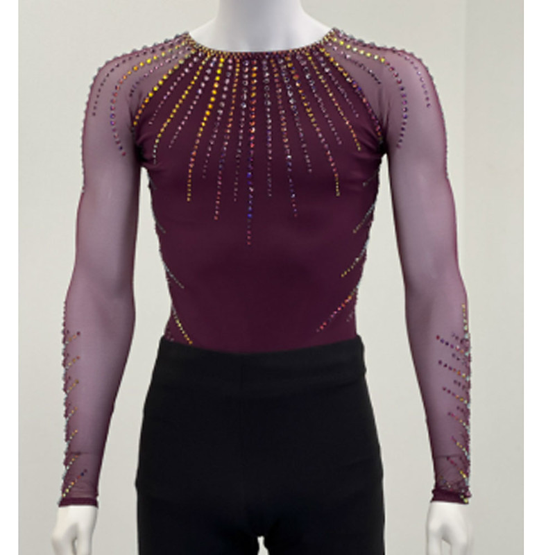 Figure Skating Top Men's Boys' Ice Skating Tops Blue Patchwork Spandex High Elasticity Training Competition Skating Wear Classic Crystal / Rhinestone Long Sleeve Ice Skating Figure Skating