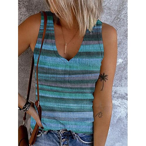 Damen Trägertop Ausgeh Tops Basic Gestreift mit Knöpfen Druck Ärmellos Reguläre Tops V-Ausschnitt Lässig Rosa Blau Lila Khaki