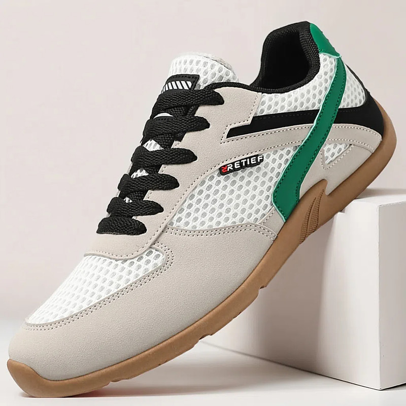 Men's White and Red Sports Sneakers with Black Accent and Lace-up Design - Athletic, Comfortable, Perfect for Running, Gym and Casual Wear