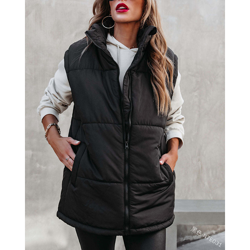 Women's Vest Warm Comfortable Zipper Pocket Fashion Plain Going out Weekend Zipper Regular Stand Collar Regular Fit Sleeveless Outerwear Black White Khaki Fall Winter