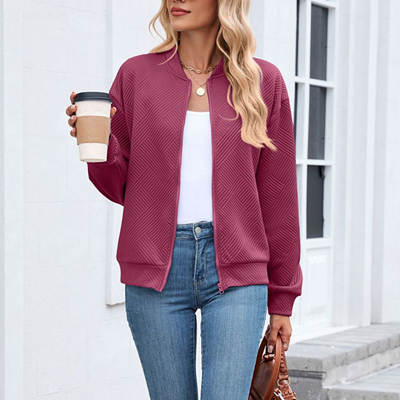 Women's Coat Casual Jacket Comfortable Breathable Zipper Fashion Modern Casual Plain Going out Weekend Zipper Regular Stand Collar Regular Fit Long Sleeve Outerwear Black Pink Wine Spring Fall