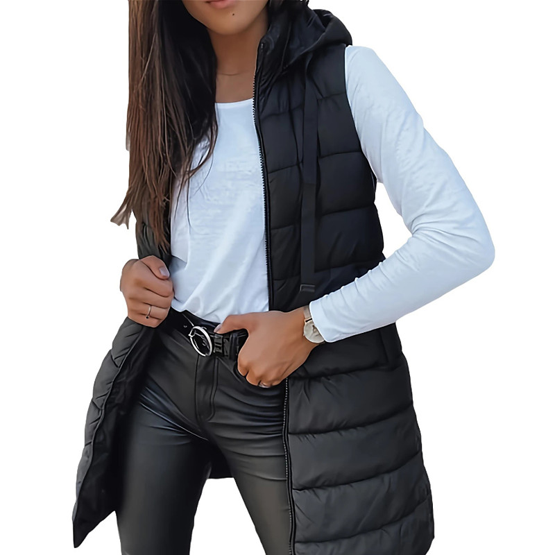 Women's Down Jacket Vest Comfortable Zipper Pocket Casual Plain Vacation Street Daily Wear Going out Long Hooded Regular Fit Sleeveless Outerwear Black Wine Red Fall Winter