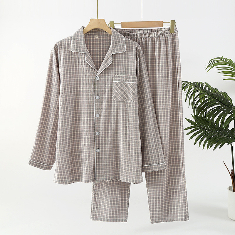 Men's Loungewear Sleepwear Pajama Set Pajama Top and Pant 2 Pieces Plaid Stylish Casual Comfort Home Daily Cotton Blend Comfort Henley Long Sleeve T shirt Tee Pant Drawstring Elastic Waist Summer