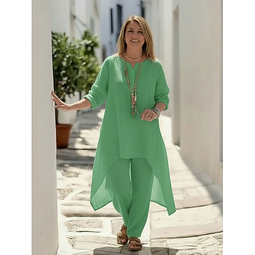 Per donna Set di Pantaloni Finto cotone e lino Manica 3/4 Girocollo Semplice Arricciato Moda Streetwear Casuale Quotidiano All'aperto Blu Nero Bianco Estate Vestibilità comoda