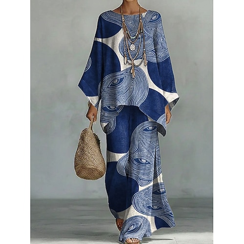 Per donna Set di Pantaloni Manica Lunga Manica 3/4 Girocollo Grafico Geometrico Sfumatura Stampato Moda Streetwear Casuale Quotidiano All'aperto Blu marino Primavera Estate Vestibilità comoda