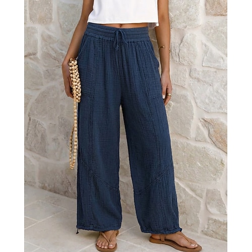 Per donna Gamba larga Vacanza Lunghezza intera Vita Alta Comodità Inelastico Casuale Quotidiano All'aperto Blu Corallo Nero Giallo Estate Primavera Vestibilità comoda
