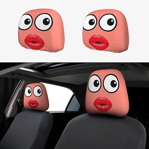 2 copri poggiatesta per auto con stampa di labbra divertenti, cuscino per il collo e cuscino di supporto lombare, morbidi e soffici, adatti per tutte le stagioni, adatti per la guida a lunga distanza,
