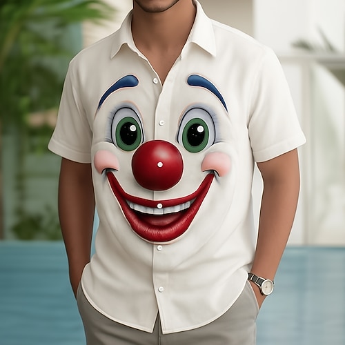 Herren Clownsmaske 3D Zeichentrick Lächelndes Gesicht Hemd Knopfhemd Kurzarm Lustig Outdoor Ferien Sommer Frühling Umlegekragen 3D-Druck Hemden mit Kragen Weiß 1 Weiß Weiß 2 Weiß 3 Weiß 4