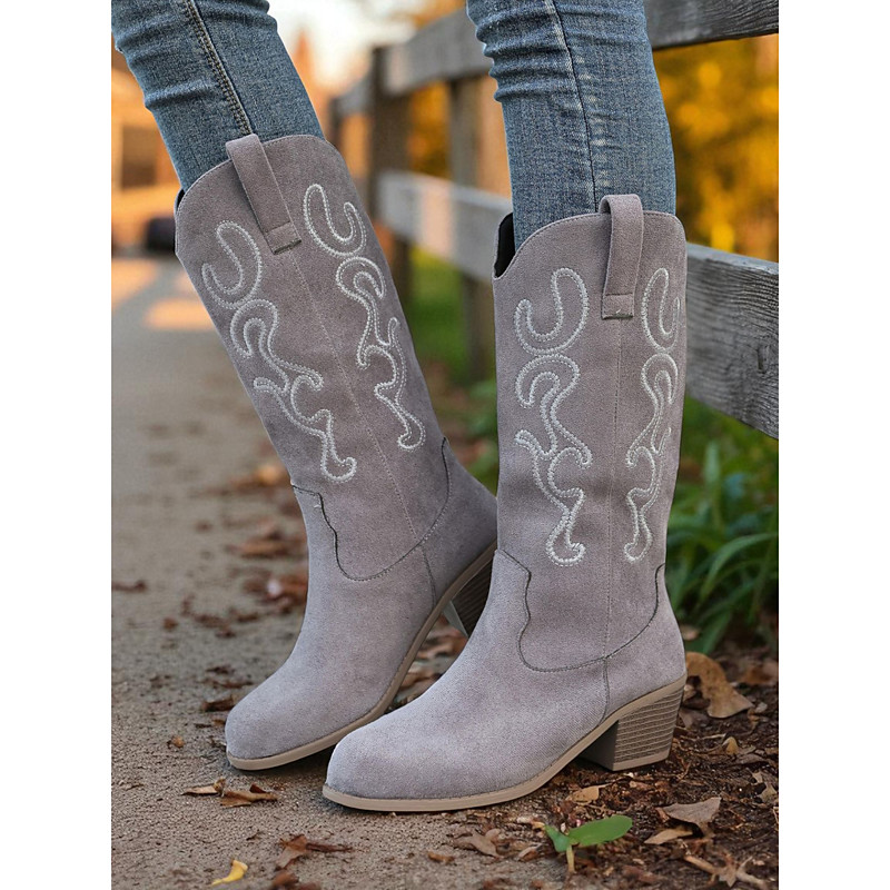 Women's Red Knee-High Faux Leather Boots - Pointed Toe Block Heel Boots for Fall and Winter Street Style, Daily Outings and Holiday Fashion
