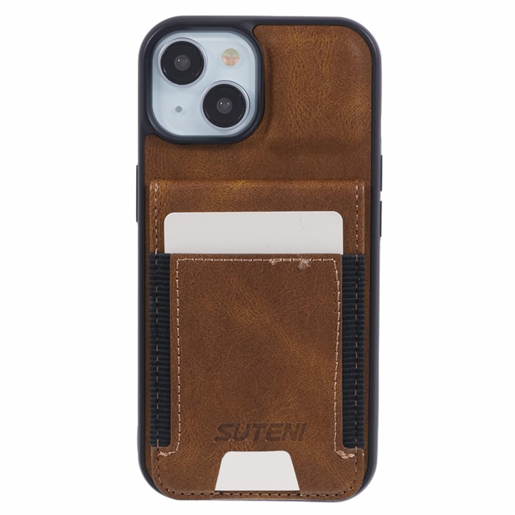 SUTENI Mobilskal till iPhone 15 Korthållare Waxy Läder - Brun