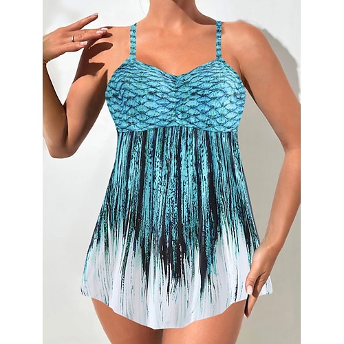 Damen Tankini 2-teiliges Badeanzug Boy Leg Rückenfrei Urlaub Strandbekleidung Geometrischer U-Ausschnitt Ärmellose Badeanzüge