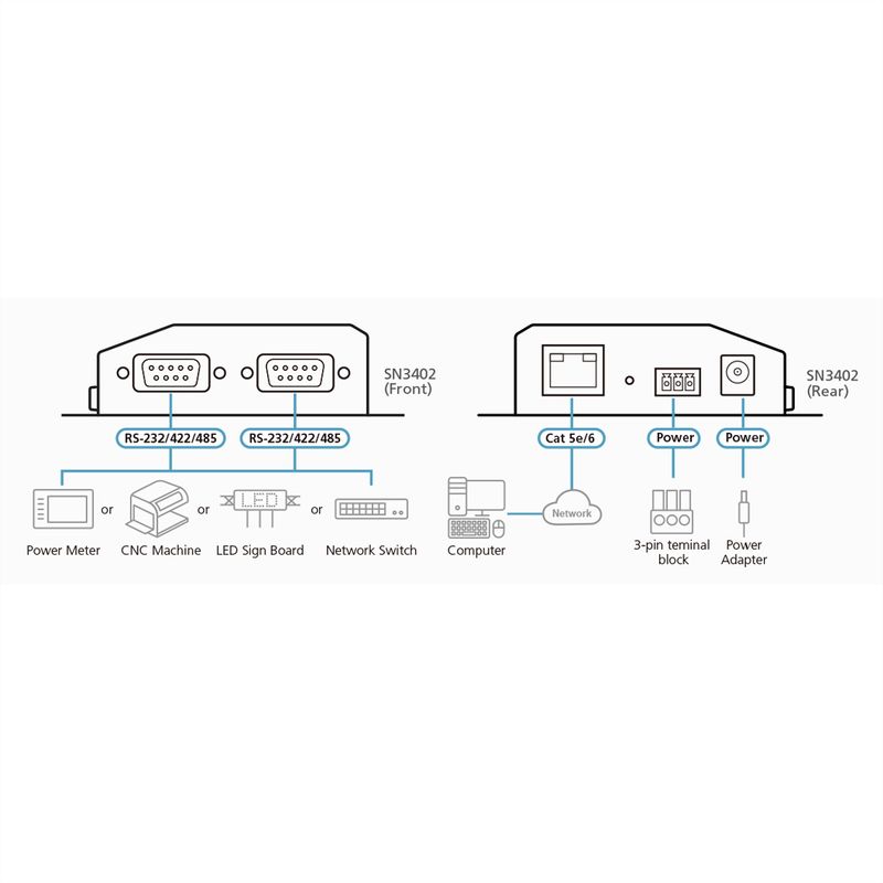 ATEN SN3402 2-Port RS-232/422/485 Secure Device Server