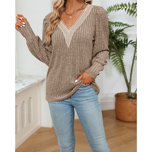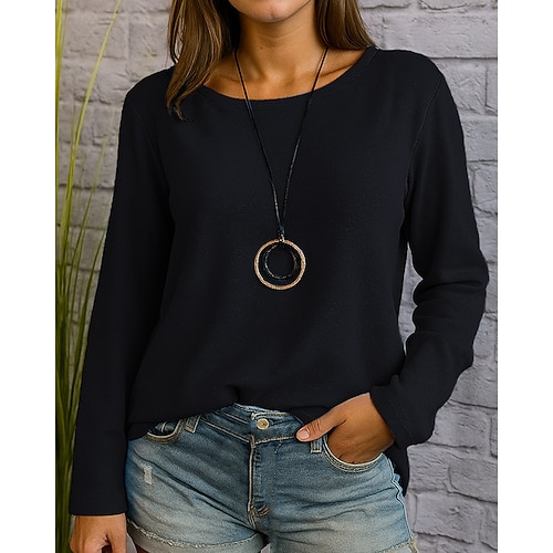 Damen Textur Bluse T Shirt Einfach Lässig Langarm Rundhalsausschnitt Normale Oberteile Täglich Ausgehen Wochenende Schwarz Marineblau Blau Grün Grau Herbst