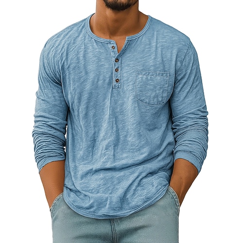 Herren T Shirt Henley Hemd T-Shirt Langarmshirt Langarm Henley Frühling Herbst Einfach Mode Designer Basic Knöpfe Urlaub Straße Ausgehen Schwarz Weiß Marineblau Top T-Shirt für Herren