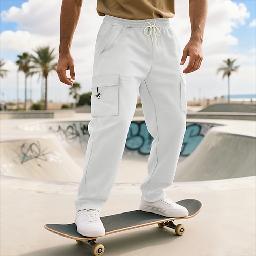 Herren Cargo-Jogginghose Jogginghose Hose Kordelzug Tasche Elastischer Bund Einfach Komfort Sport im Freien Täglich Mode Lässig Schwarz Weiß Mikroelastisch
