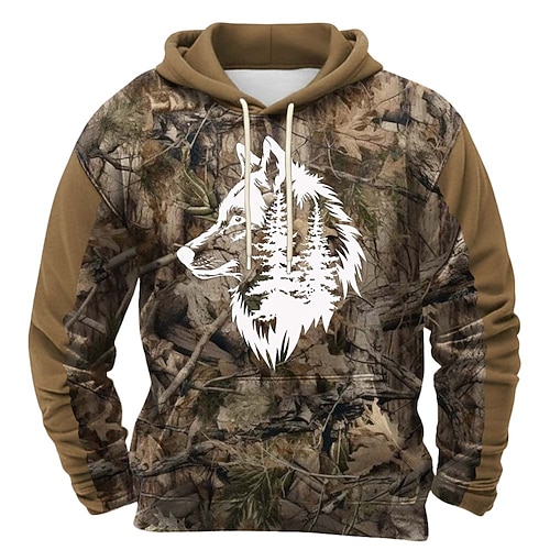 Herren Wolf Kapuzensweatshirt Pullover Mode Klassisch Rundhalsausschnitt Outdoor Jagd Schwarz Braun Khaki Braun 2 Kordelzug Herbst Winter Designer S M L XL XXL XXXL