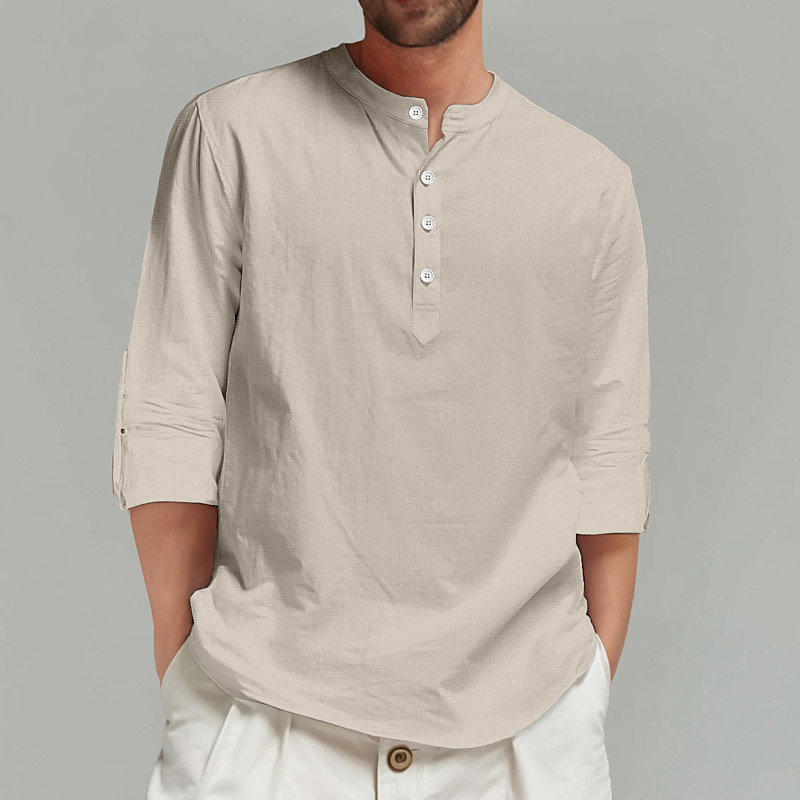 Men's Shirt Linen Shirt Summer Shirt Beach Shirt Solid Color Vacation Casual Black White Pink Blue Long Sleeve Henley Clothing Apparel Plain