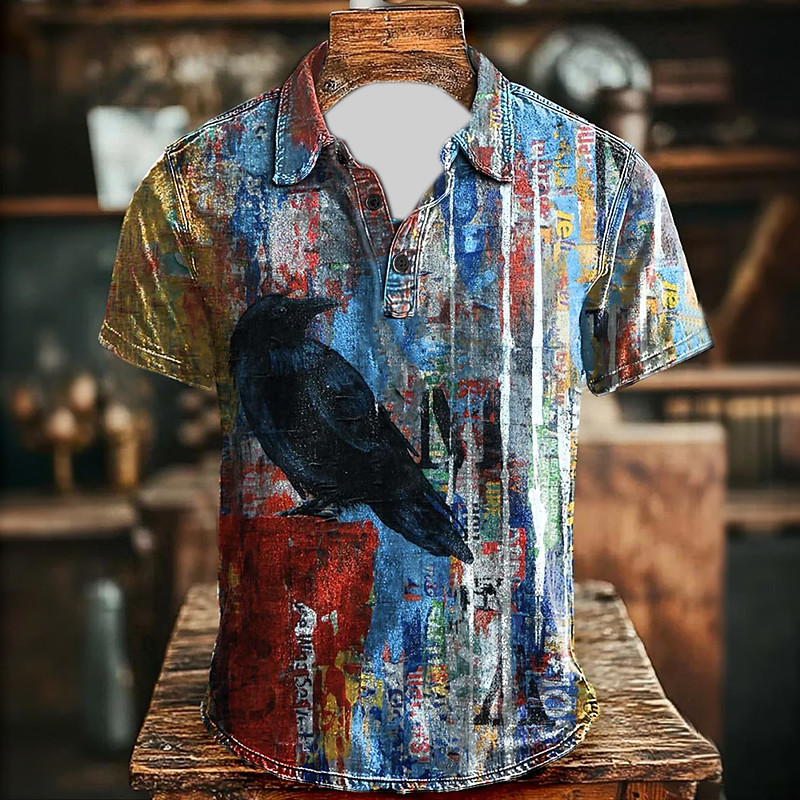 Men's Oil Painting Polo Short Sleeve Polo Shirts Collared Shirts Vintage Casual Athleisure Daily Wear 3D Print Buttons Summer Blue