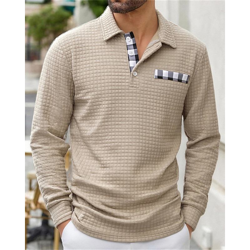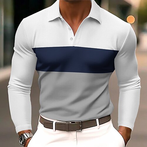 Herren Polo Poloshirts Urlaub Straße Viertelreißverschluss Langarm Mode Basic Farbblock Patchwork Frühling Herbst Normale Passform Weiß Polo