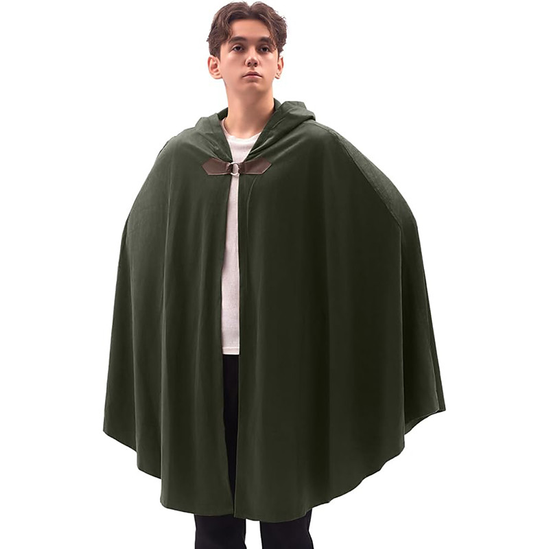 Retro Vintage Medieval Renaissance Cape Hooded Cloak Ranger Elven Fancy Dress Men's Celtic Viking Fantasy Halloween Carnival Masquerade Party LARP Adults' Cloak