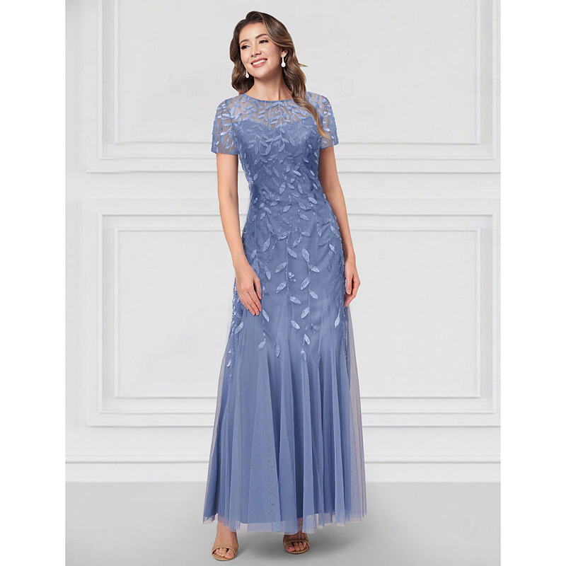 A-Line Dress Ankle Length Beaded Eembroidered Party Dress Cocktail Dress Mother of the Bride Dress Short Sleeve V Neck Elegant Vintage Formal Tulle with Flower