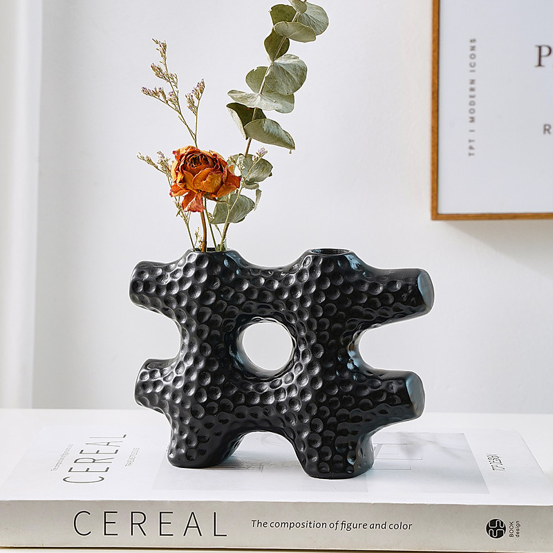 1PC Modern Creative Peanut-patterned Checkered Decorative Vase Made Of Golden Resin is A Home Decoration Item Suitable for Home Decoration And Can Be Used All Year Round