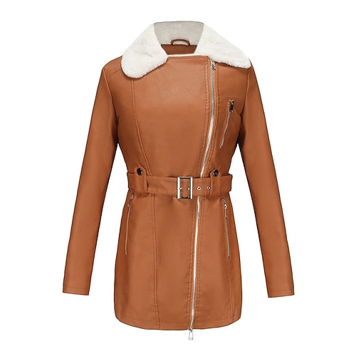 Per donna Giacca in Ecopelle Giacca Sherpa Caldo Confortevole Cerniera Tasca Con cintura Casual Tinta unica Vacanza Streetwear Casuale Abbigliamento quotidiano Regolare Collo ripiegato Vestibilit