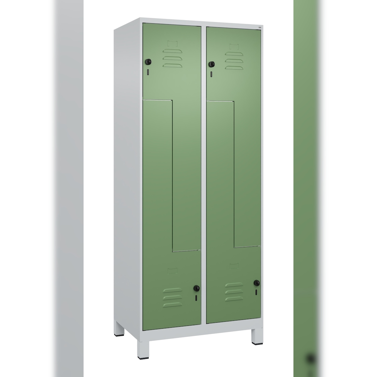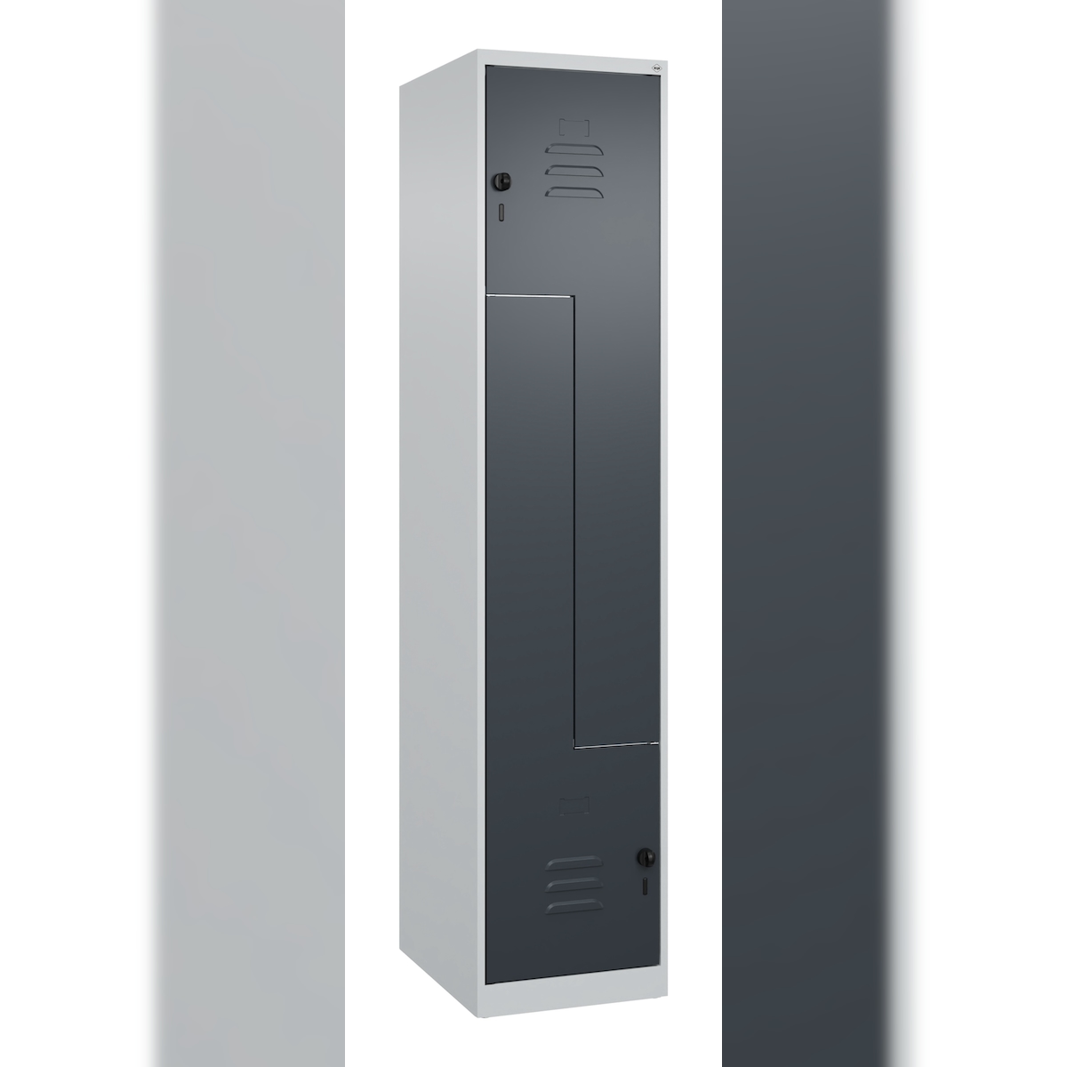C+P Z-Spind Classic PLUS bodenstehend, 2 Abteile, HxBxT 185x40x50cm, Sicherheitsdrehriegel, Hellgrau/Anthrazit von PROREGAL