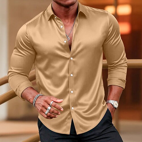 Per uomo Camicia Camicia in raso Camicia elegante Camicia casual Camicia con Bottoni Camicia da Ballo Semplice Formale Matrimonio Blu chiaro Nero Bianco Vino Manica Lunga Bavero Tutte le stagioni