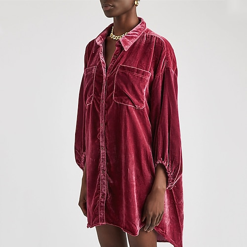 Per donna Camicia Blusa Semplice Moderno Casual Manica Lunga Colletto a Camicia Top Regolari Quotidiano Ferie Tasca Bottoni Vino Viola Marrone Autunno