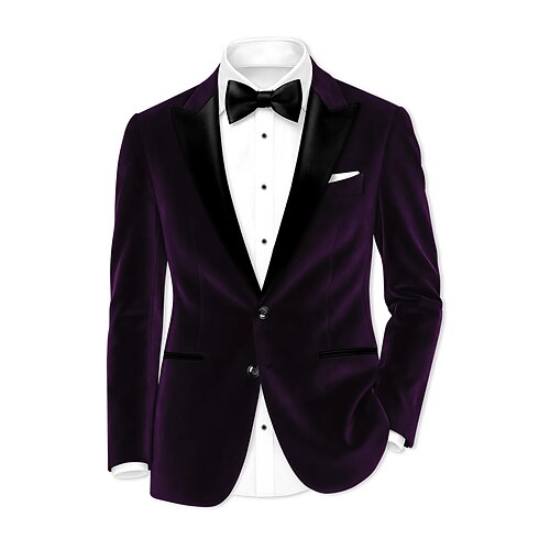 Per uomo Blazer di velluto Collare di chiusura Moda Festa Classico Tinta unita Blazer di velluto Nero Viola Verde Vestibilità su misura Monopetto Due Bottoni