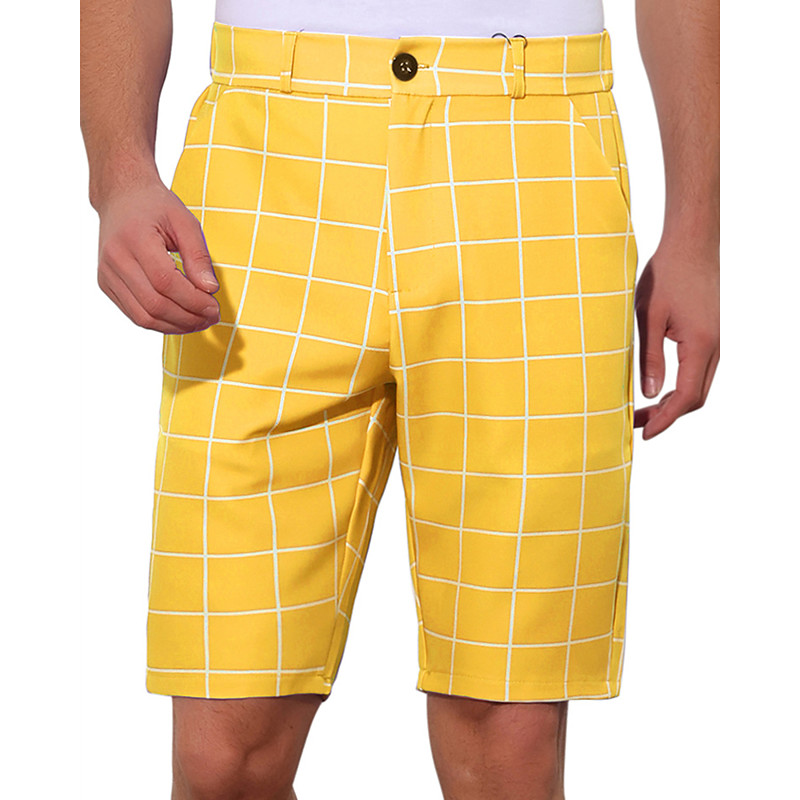 Men's Dress Shorts Burmuda Shorts Work Shorts Pocket Geometric Comfort Breathable Knee Length Outdoor Business Fashion Casual Black Yellow