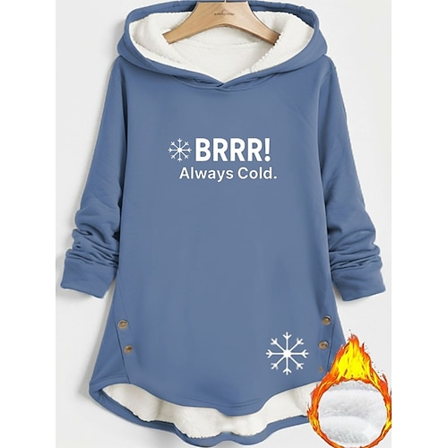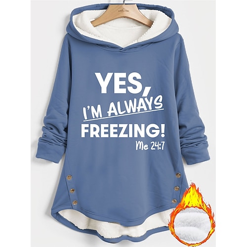 Damen Kapuzenpullover Grafik Buchstabe Warm Lässig Langarm Mit Kapuze Lange Oberteile Straße Alltagskleidung Knöpfe Druck Schwarz Dunkelpink Blau Grau Herbst Winter