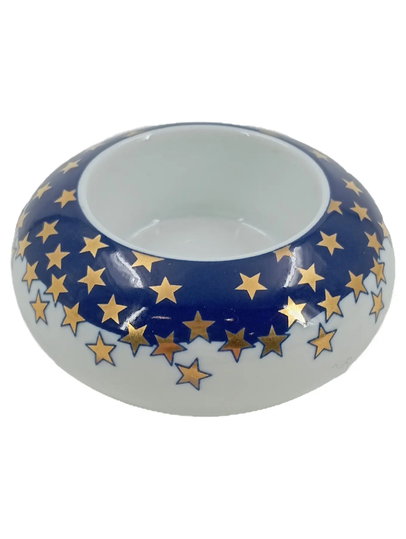 ARZBERG Teelichthalter Porzellan rund blau weiß gold Sterne 7,5 cm Durchmesser 3 cm Höhe