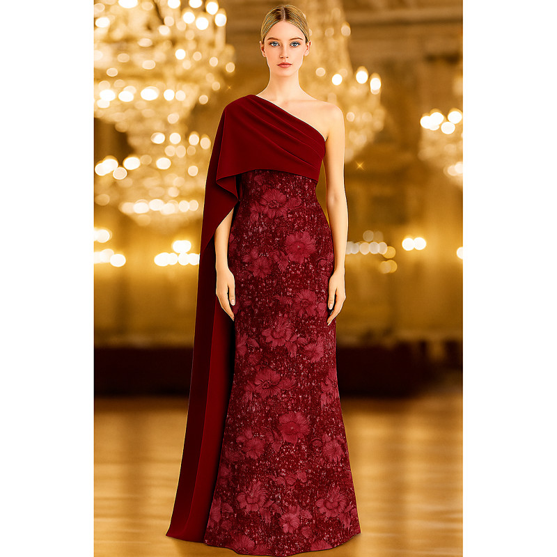 Sheath Column Floor Length Beaded Eembroidered Formal Dresses Mother of the Bride Dress Evening Gown Ball Gown Formal Dress Elegant Black Dress Silky Sleeveless One Shoulder Wedding Formal Capes Lace