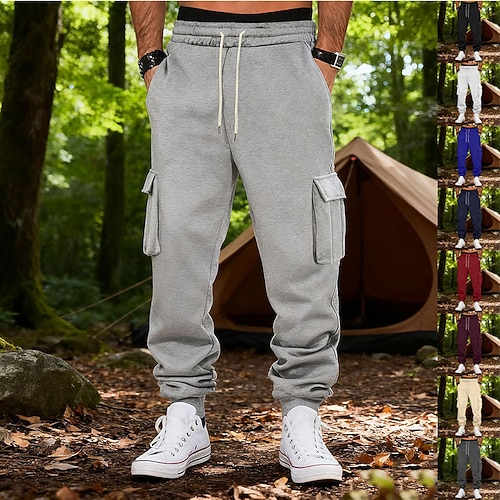Per uomo Pantaloni in pile Pantaloni della tuta Pareggiatore Pantaloni Pantaloni della tuta cargo A cordoncino Vita elastica Multi tasca Tinta unica Antivento All'aperto Lunghezza intera Informale