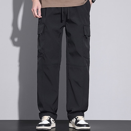 Herren Cargo-Hosen Hose Kordelzug Elastischer Bund Mehrere Taschen Einfach tragbar Outdoor Täglich Campen und Wandern Mode Klassisch Schwarz Weiß