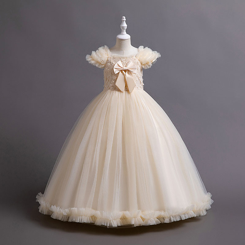 Flower Girl Dress Girls' Formal Dress Wedding Attire Party Wedding Formal Adorable Princess Beautiful Patchwork Mesh Solid Color Short Sleeves Crew Neck Champagne Pink 4 years