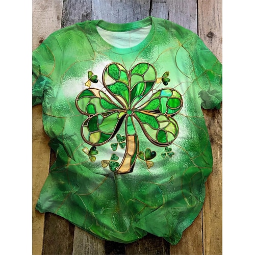 Maglietta da donna di San Patrizio Fortunata Cuore Shamrock Stile Vintage Elegante Casual Maniche Corte Collo a Giro Regolari Tops Stampa Quotidiana Verde Salvia Verde Chiaro Verde Estate Primavera
